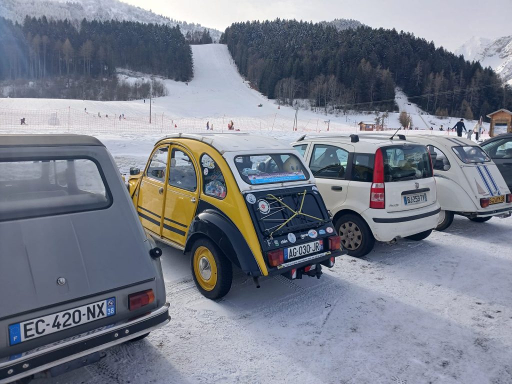 Notre 2Cv aurait souhaité remonter la piste de ski, mais il semble que cela soit interdit