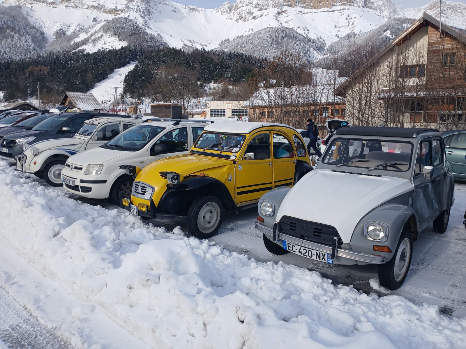 Notre 2Cv aurait souhaité remonter la piste de ski, mais il semble que cela soit interdit